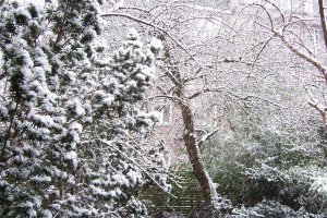 The snow is falling in my garden in the city, covering my plum tree and taxus, my holly and bamboo, my Japanese cherry and my ivy, my pear tree, the new crocusses and my daffodils.