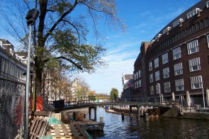 The canal is Oude Zijds Achterburgwal, a very old canal in the very old part of town. Built around the 17th century On the other side of the bridge the Red Light District starts. The building you see on the right is where I took the other two pictures