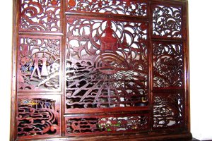 The carved wood shows a Dutch girl in the middle who is holding everything together.