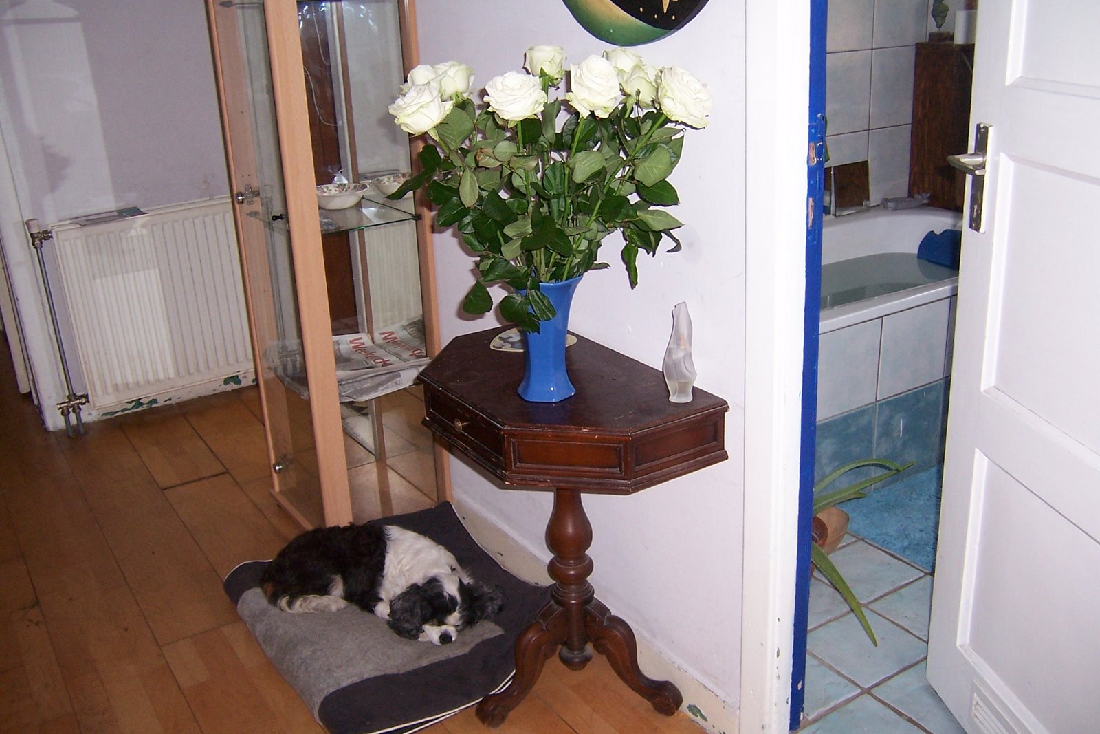 Almost 15 years old Britta sleeping in the hall while my bath is running