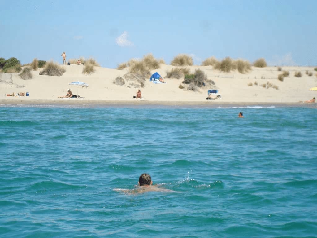 We got out and smelled the sea. We went over a dune and behind it was a beach with hundreds of naked people sunbathing. We had unexpectedly arrived at one of the largest nudist beaches in France. The beach of l’Espiguette and Camargue au Grau du Roi.