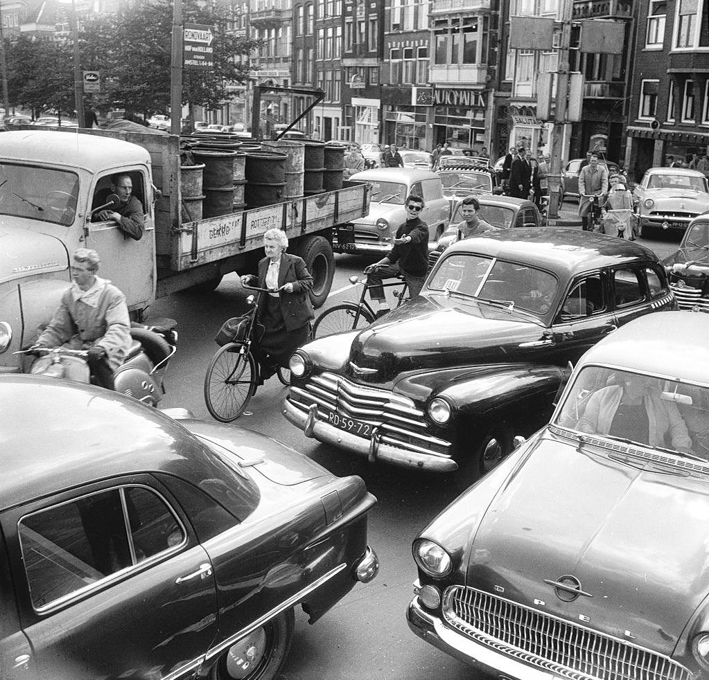 Het was iets voor middernacht en ik fietste over het Muntplein, het was er druk, brommers, fietsen, trams, auto’s, alles door elkaar.
