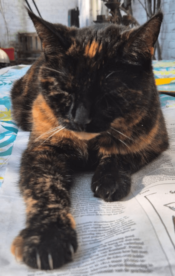 Zestien jaar lang was ze er gewoon, elke dag. Twee keer was ze een periode afwezig. Toen was ze krols en was ze verdwenen. Dagen en nachtenlang kwam ze niet thuis. Ik wilde bijna briefjes op hangen en door de brievenbussen gooien en toen kwam ze weer. Uitgekrolst. Na de tweede keer krols heb ik haar laten steriliseren. Dat was een van de drie keer dat ik met haar bij de dierenarts was. Haar leven hier met mij was zo vanzelfsprekend. Wel realiseerde ik me onlangs dat er een tijd zou komen dat ze niet meer bij me was en ik zei tegen haar: blijf jij nog maar lang bij me. Misschien wilde ze dat wel maar helaas is het leven eindig.